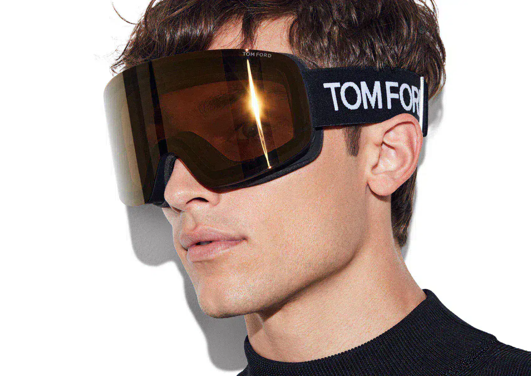 GAFAS DE ESQUÍ CON DETALLES DEPORTIVOS Y CARACTERÍSTICAS TÉCNICAS. LA CORREA ELÁSTICA NEGRA AJUSTABLE PRESENTA LA FIRMA DE TOM FORD EN UN LOOK BLANCO VINTAGE. LENTES INTERCAMBIABLES EN COLOR PLATA CARNE Y BRONCE FOTOCROMÁTICO.