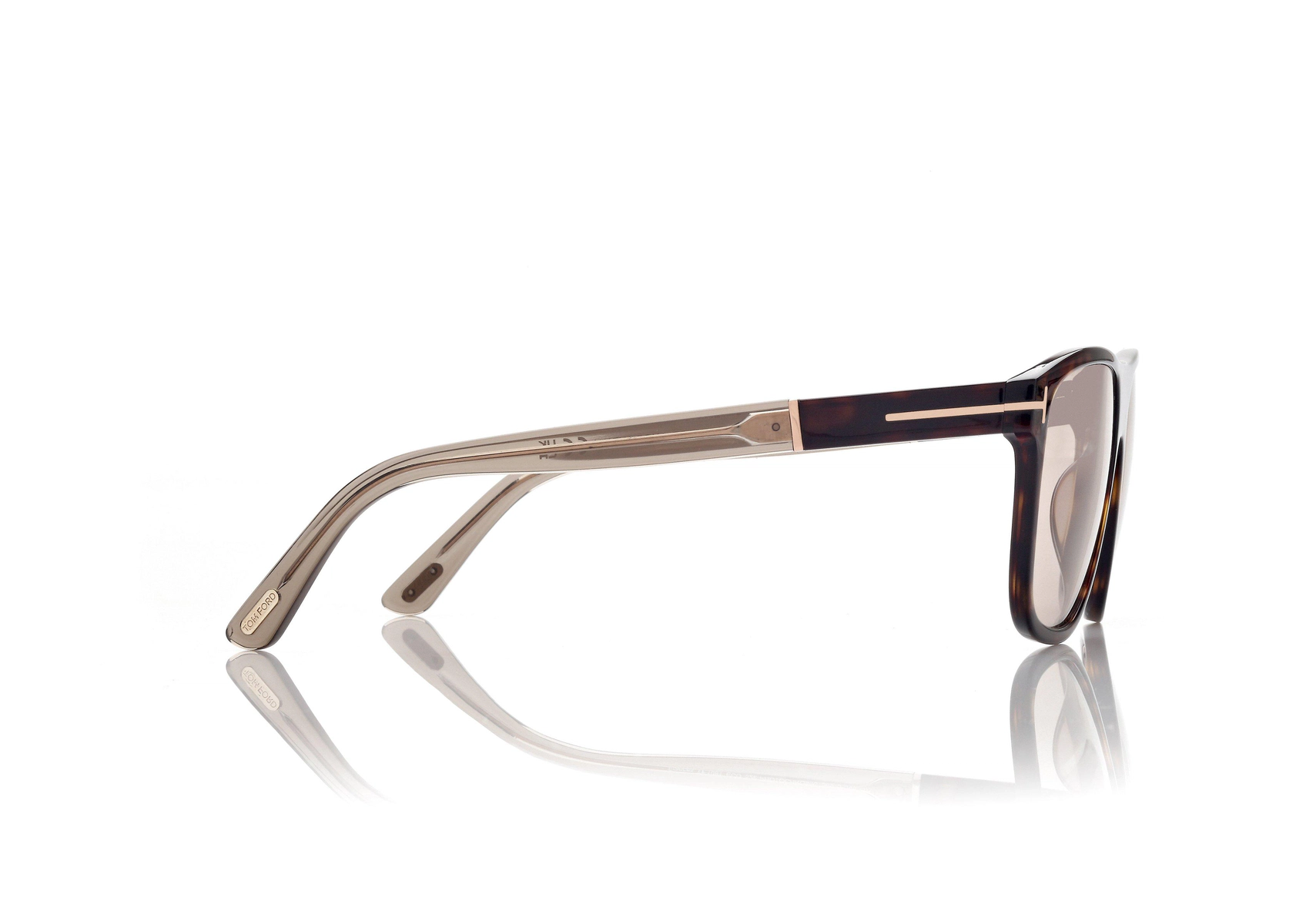 Modelo de acetato brillante con el logo T metálico brillante en las patillas.
