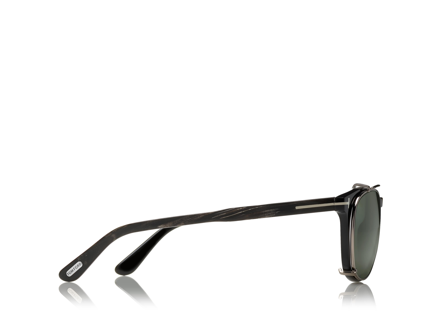 - Montura de cuerno real con rayas brillantes y logotipo T en oro rosa brillante