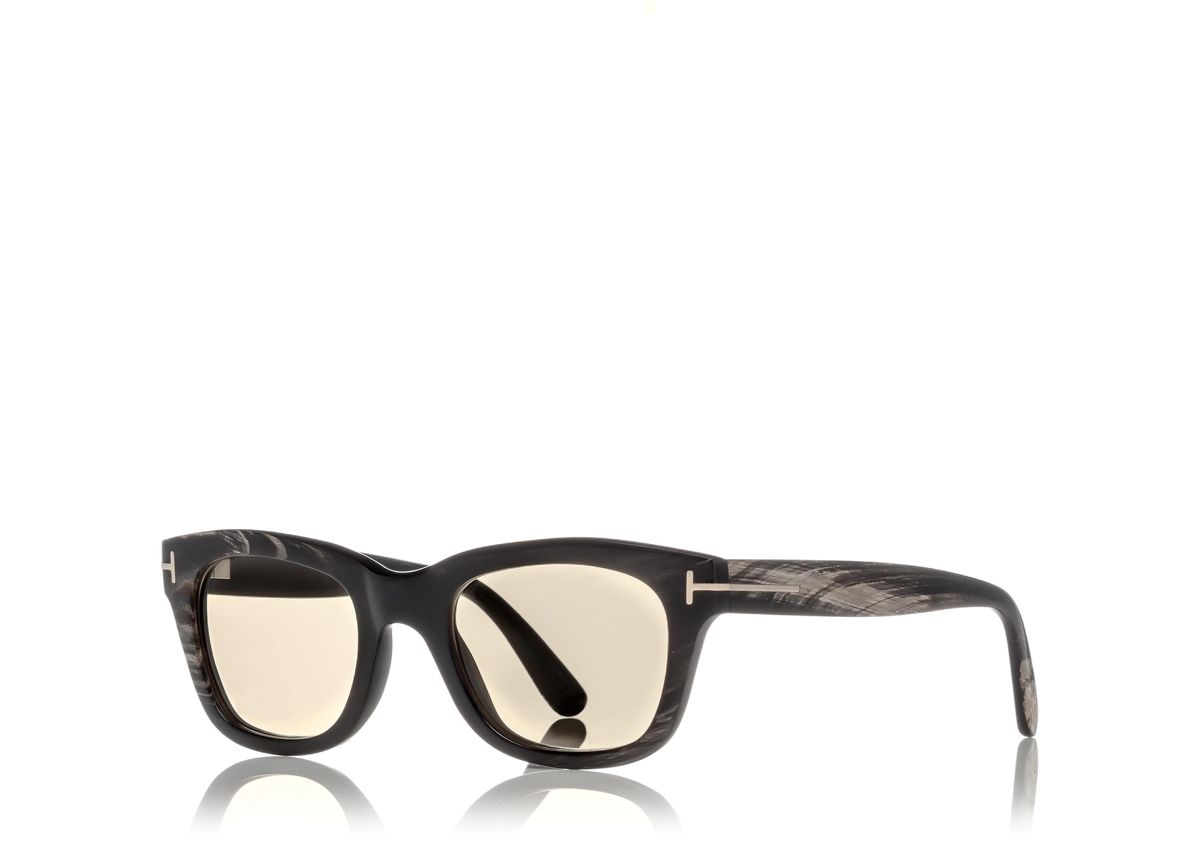• Cuerno auténtico con el logotipo «T» en oro rosa brillante y lentes fotocromáticas de color humo claro.