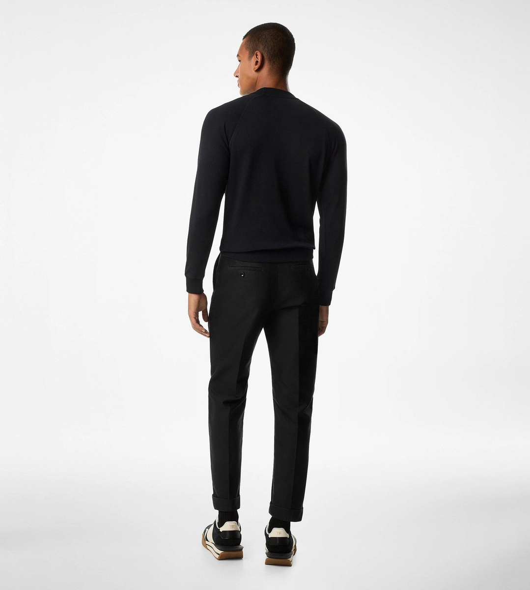 - CIERRE DE BOTÓN DE CUERNO CON LA FIRMA DE TOM FORD EN LA BRAGUETA, BOLSILLOS DE OJAL Y CINTURA