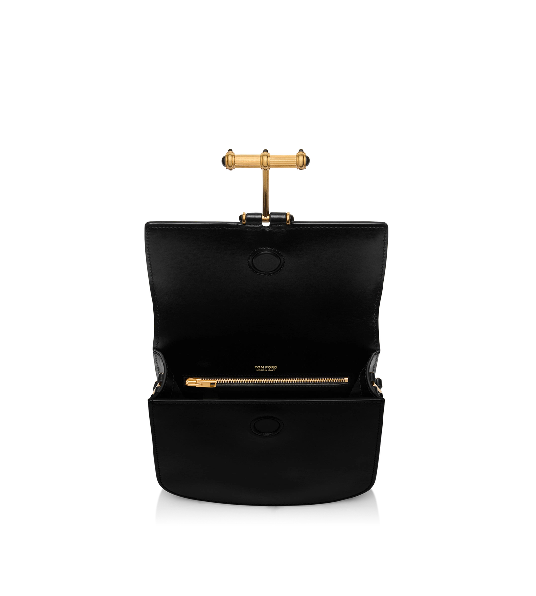 - HERRAMIENTAS DE LA FIRMA EN T COLGANTE ADORNADAS CON DETALLES ACANALADOS Y CABUJONES DE CRISTAL SWAROVSKI NEGROS APLICADOS A MANO