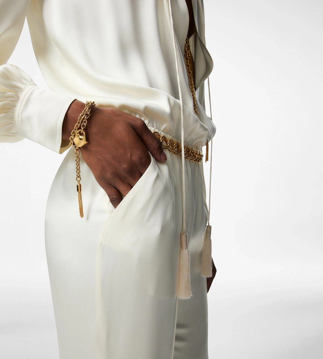 VESTIDO DE NOCHE DE SEDA CON ESCOTE EN V PROFUNDO, SIN MANGAS Y CON GIRO DELANTERO