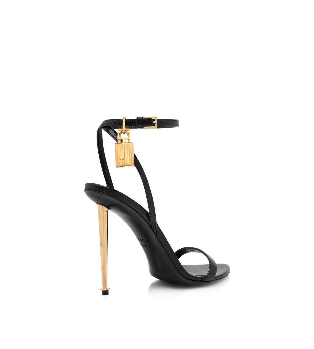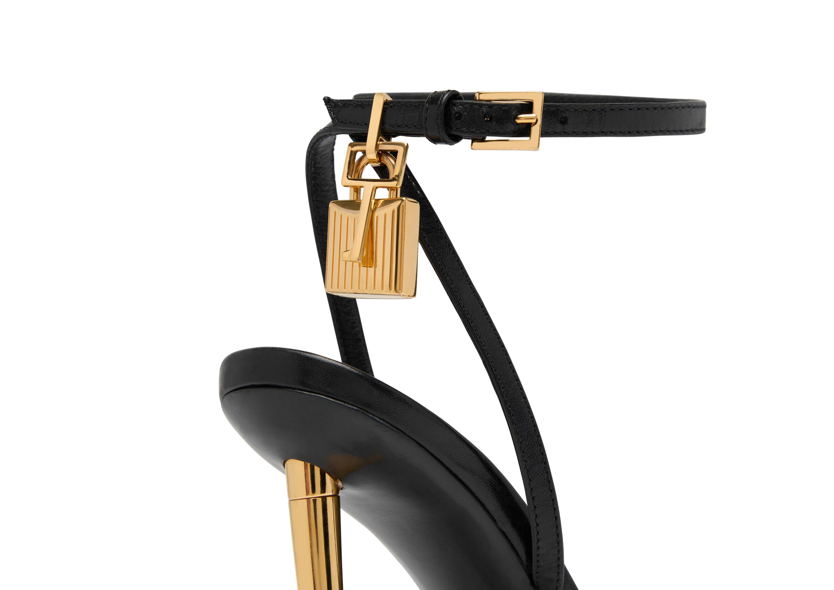 SANDALIA DE PIEL BRILLANTE CON CANDADO Y PUNTA DESNUDA
