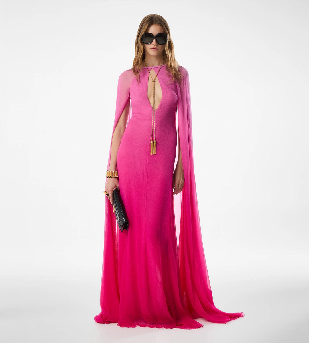 - VESTIDO LARGO DE NOCHE CON ESCOTE PROFUNDO EN CIERRE DE CEJUELA