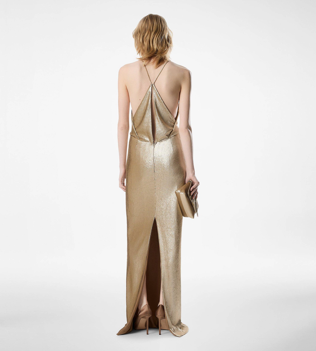 - VESTIDO DE NOCHE CON CUELLO EN V Y RECORTE