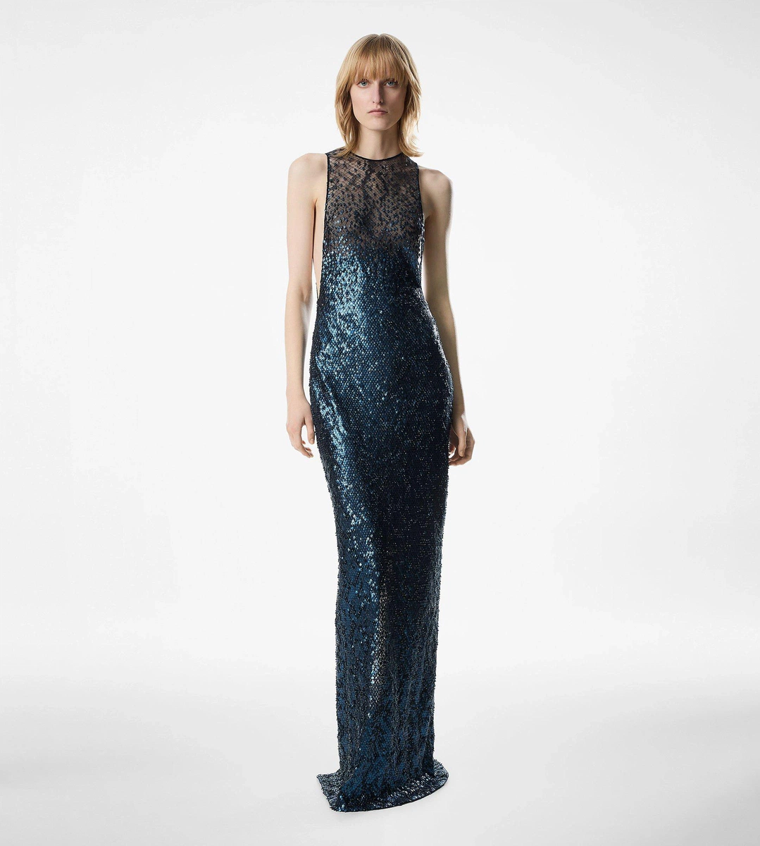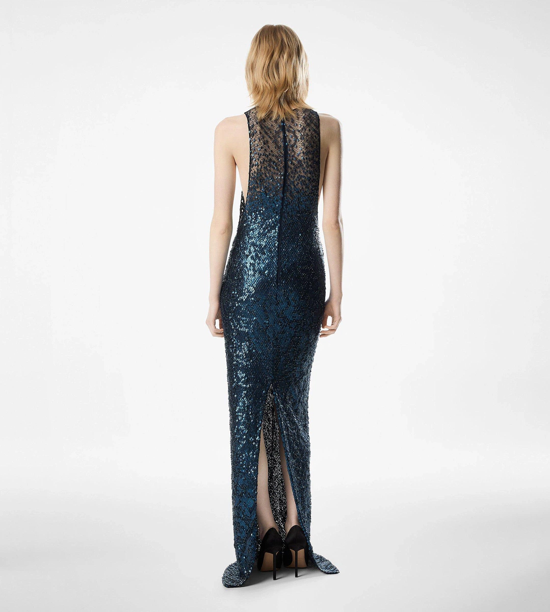 - LÍNEAS DEGRADADAS DE LENTEJUELAS RECUBIERTAS DE SATÉN AZUL EN COLOR AZUL MEDIANOCHE
