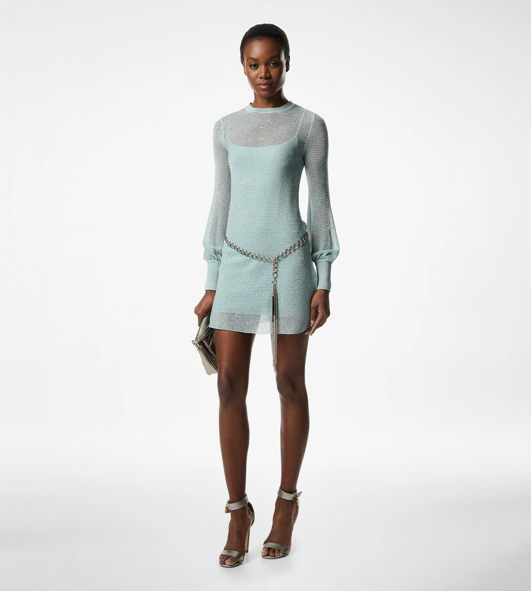 • VESTIDO MINI DE CUELLO REDONDO CON MANGA LARGA