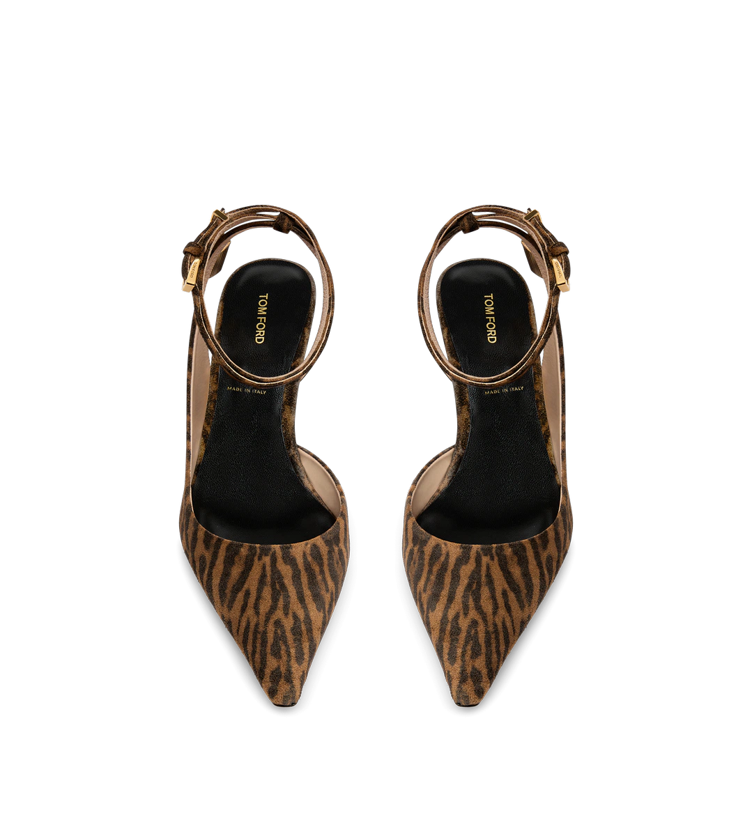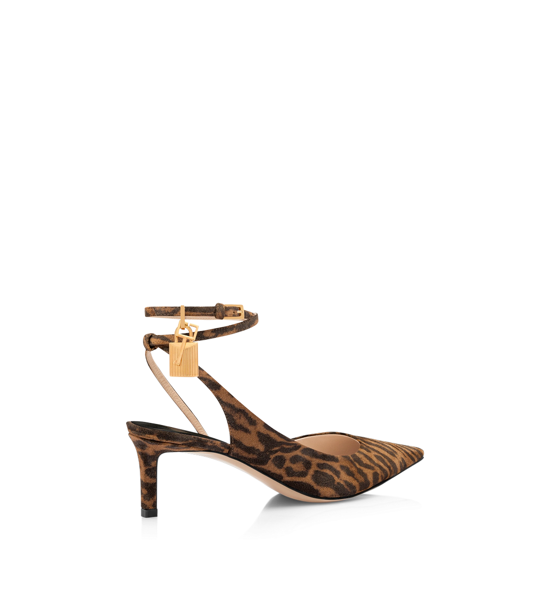 ZAPATO DESTALONADO DE ANTE CON CANDADO Y ESTAMPADO DE OCELOT